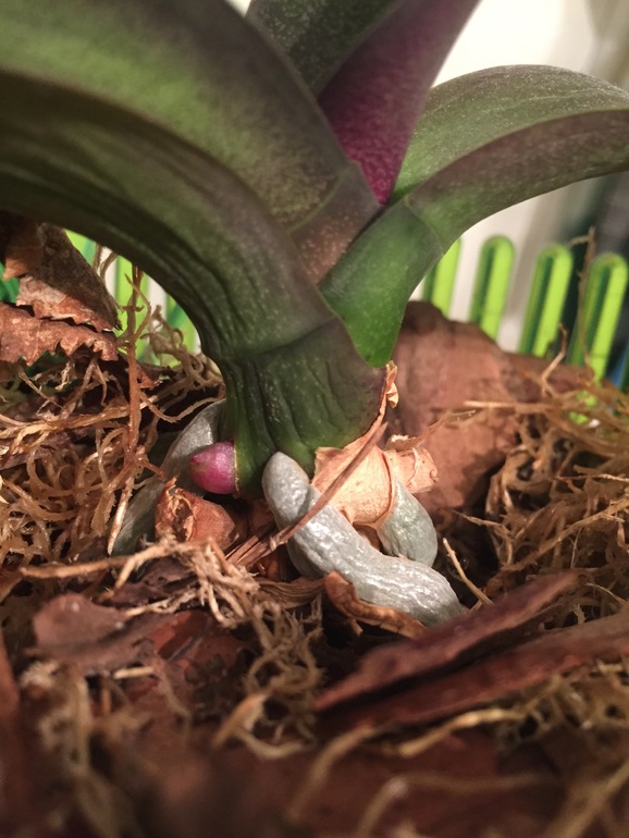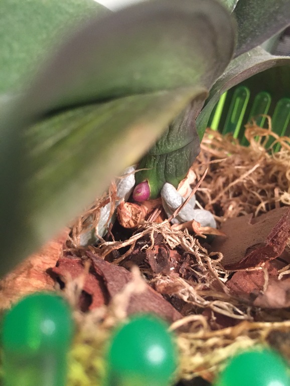 Орхидеидевочки, помогите определить, что это цветонос или детка? Уже долго наблюдаю, у нескольких орхидей цветоносы довольно таки быстро расту и сомнений в том, что это цветонос, а этот прямо как будто замер....