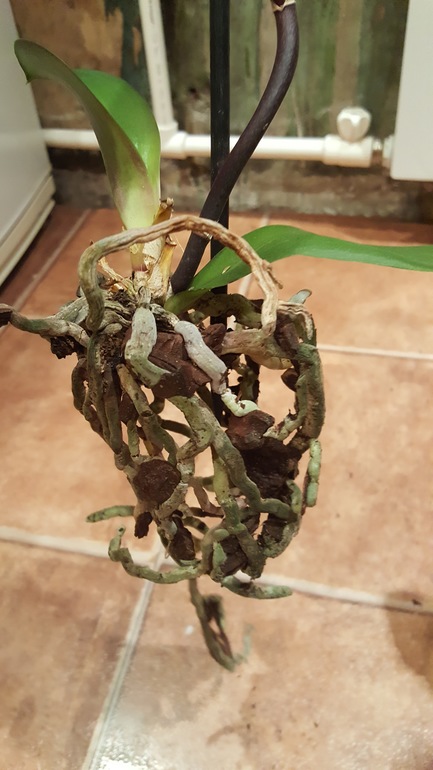 Ну а прежде всего нужно достать из горшка, осмотреть внимательно и, если есть гниль - вырезать и присыпать корицей.