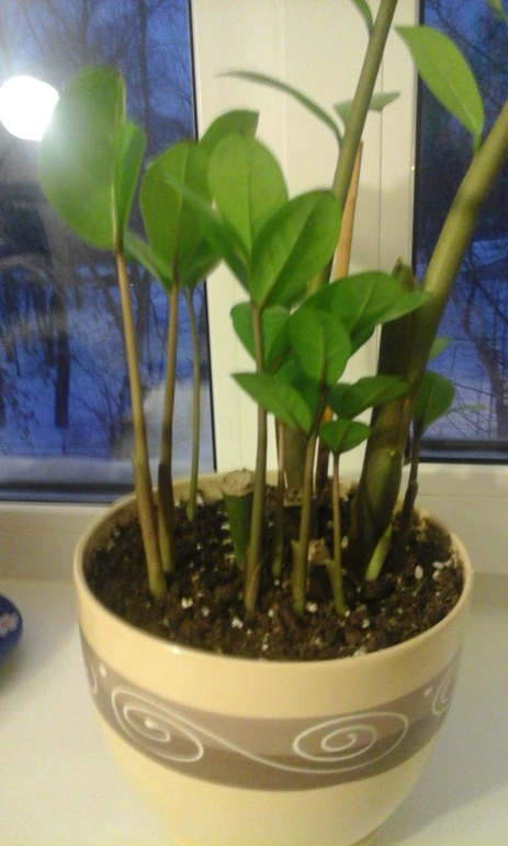 У меня тоже на западной стороне растет, но такого нет вроде. Листики стали мельче и короче но не существенно. Может и правда из-за большого горшка клубень начал делиться и появились так сказать детки? У замика принцип такой что он стрелки активно пускает когда ему становится тесно в горшке)) а до этого очень активно наращивает клубни для заполнения пространства в горшке