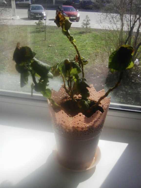 Срежьте все этм листья, оставьте от земли см по 5 - 10 и у вас новые листья попрут. Бегонию лучше обрезать