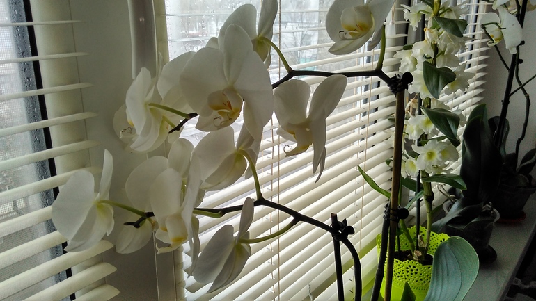 3) На 8-е марта муж подарил дендробиум нобиле все подруги офигели:). Он очень красиво цветет, но....абсолютно новый цветок для меня. С учетом того, что на моей совести уже не один загубленный фаленопсис, очень бы хотелось закончить череду бессмысленных цветочных смертей:) Я прочитала, что он очень любит солнечный свет, а моя квартира расположена так, что прямых солнечных лучей летом после 11 утра чуть меньше, чем нет. А этот красавец рОстит детку, а я....хожу кругами и думаю, что мне делать?