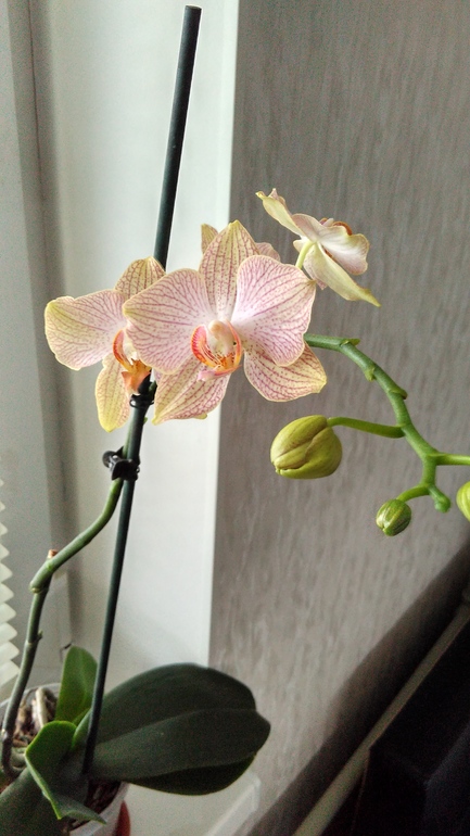 Цветет с октября. Значит - могу, значит не все совсем со мной плохо. Очень уж мечтаю о кухонном подоконнике в орхидеях. Спасибо всем, кто подскажет, а тем кто дочитал - пирожок.как