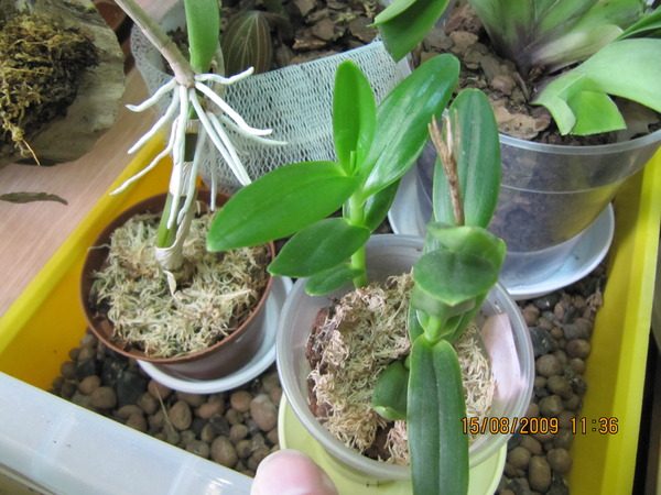 Маленькие орхидеи еще в пакеты прозрачные с небольшими отверстиями вставлю, чтоб влага быстро не испарялась. Примерно так...
