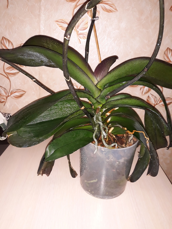 Людям часто хочется что-нибудь с орхидеей сделать: отрезать лишнее, пересадить, "рассадить"... Не надо ее трогать, прекрасное растение! Просто поливайте грамотно и все будет хорошо! Если совсем завалится, вылезет из горшка, станет похожей на пальму и т.д. - можно подумать над тем, чтобы подобрать ей горшок пошире и немного поглубже, но, поверьте, пока корней не станет полный горшок, трогать ее совершенно необязательно. Растет, цветет, зачем ее тревожить напрасно? Тем более, опасности для жизни нет )