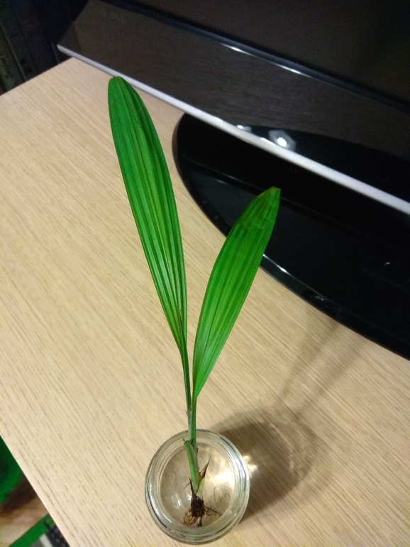 Если листья жесткие, то всё-таки финиковая пальма. Похоже что натыкали много косточек в один горшок без надежды на удачу, а они все и проросли. Позже листья по складкам начнут разделяться.
