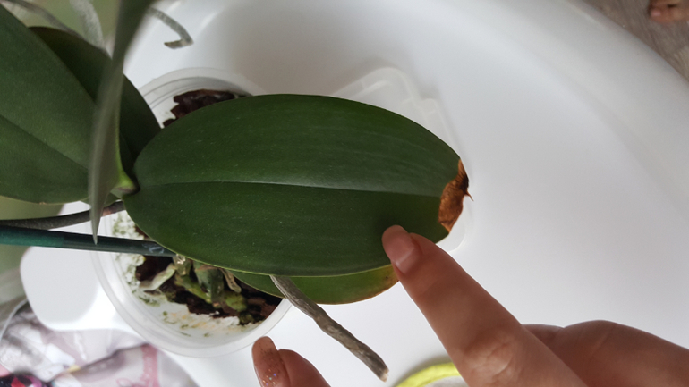 ОрхидеиВсем доброго дня!!! 3 недели назад подарили мне мою первую орхидейку. Заметила, что на стенках горшка были уже зеленые водоросли. Полила через 10 дней методом погружения на 15 минут в воду. Потом дождалась когда лишняя вода стечет, убрала воду. Через несколько дней пожелтел лист, я по глупости (насмотревшись видео в интернете) его убрала. Еще через несколько дней заметила черные пятна на шейке и кончики листиков начали сохнуть. Ничего не делала. Вчера заметила в грунте плесень. Поливала так же погружением 2 дня назад на 10 минут. Залить вряд ли смогла, скорее всего процесс уже начался в магазине. Цветонос сразу стал скидывать цветы и сейчас ничего не осталось. Думаю пересадить и обработать. Не знаю как правильно поступить. Может дадите дельный совет? Очень хочется выходить красотку.... фото прилагаю