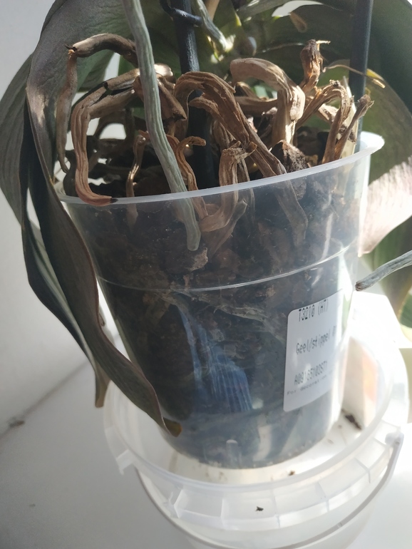 Очевидно их надо пересадить. Они похоже после покупки не пересаживались. Там ещё торфяной стакан по попой - его надо убрать. Пересадить можно в чистый керамзит. Я посадила- норм себя чувствуют. Так как нормальную кору попробуй найди