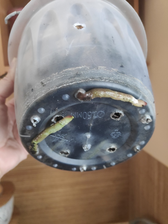 Да все ок с корнями и размером, посажена детка всего пару месяцев назад. И вот так корни проросли прям сразу. Они же и дальше переть будут, вот что меня волнует. Может их как завернуть обратно в другие дырочки? Или пусть растут как хотят?