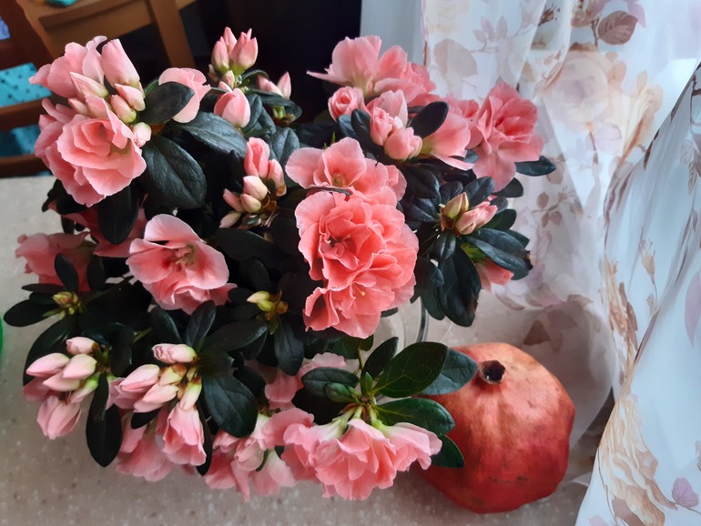 У меня большая удача для цветов - дача. Все лето цветы на открытом воздухе, азалия стояла на крыльце под крышей в тенечке, но утреннее солнышко ловила, балдела там, поливала дождевой водой из бочки. В квартире можно это устроить на балконе. Сейчас она стоит на северном окне в кухне, на окне довольно прохладно, батарея в стороне. Не опрыскиваю, но раз в месяц горячим душем ее проливаю в ванне и оставляю в пару стоять на час. Только сразу после этого на холодное окно ставить нельзя, на след день можно. Это третья моя азалия благополучно растущая дома, предыдущие 2 погибли от стечения обстоятельств - остались на даче на 2 недели без полива, а было очень жарко.