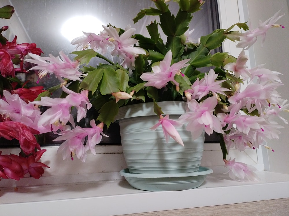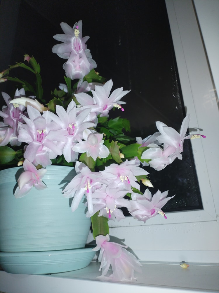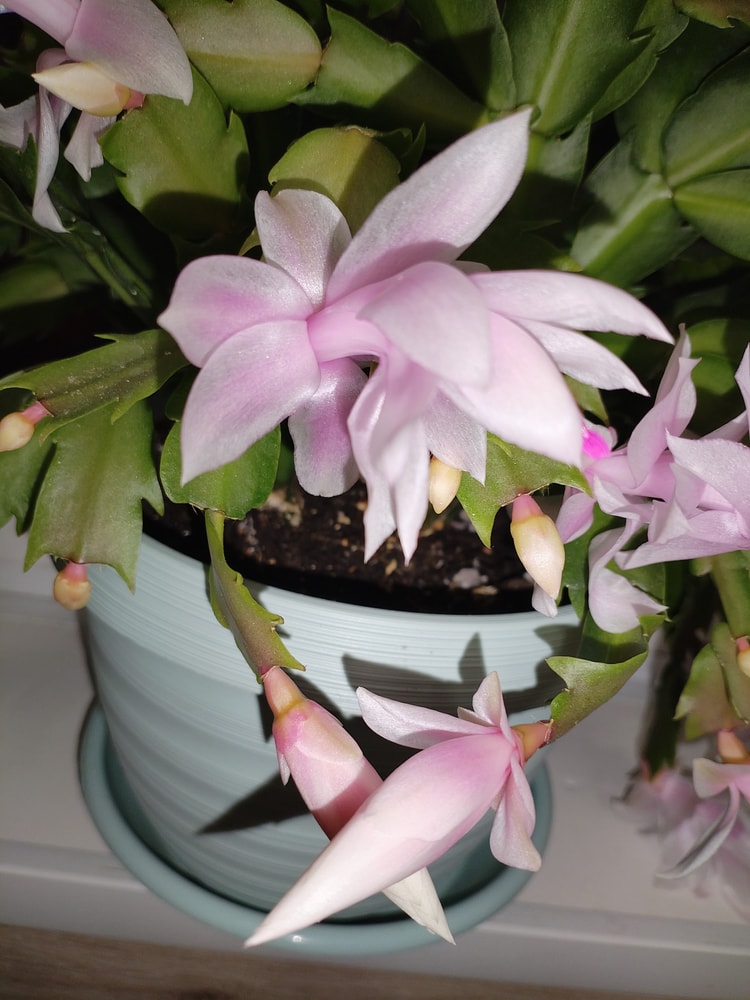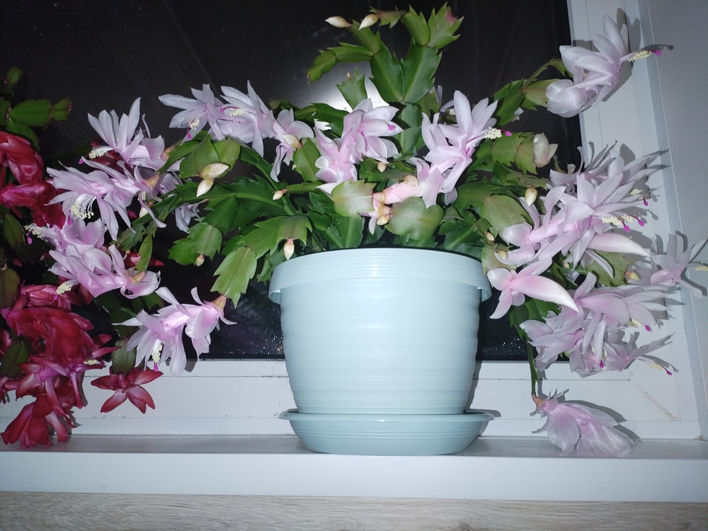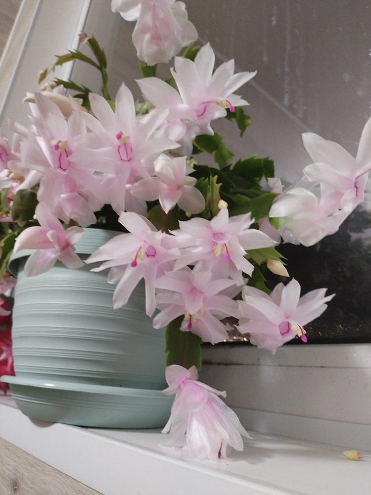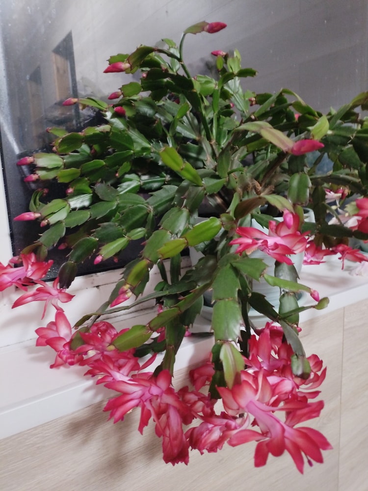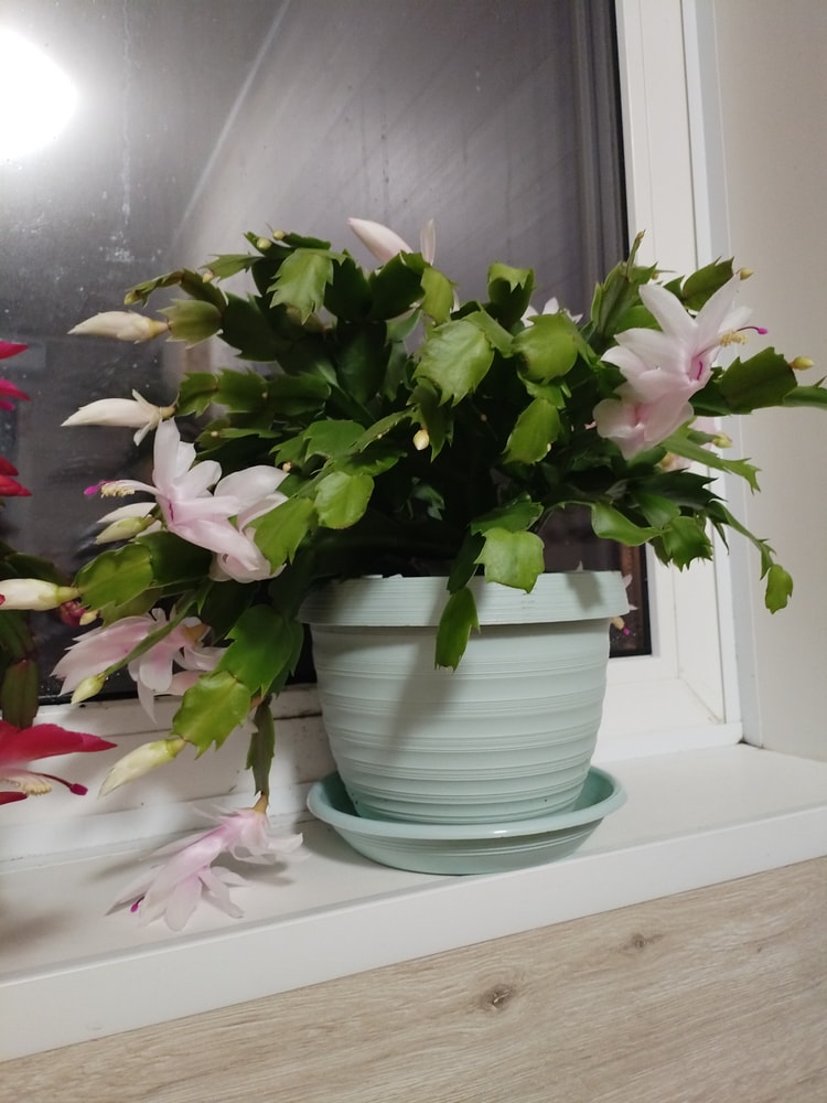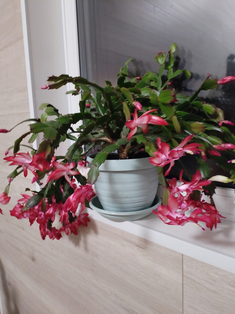 Небольшой горшок, редкий полив, прохладное светлое место, днем без прямых солнечных лучей. Научное название Шлюмбергера, прости господи))))
