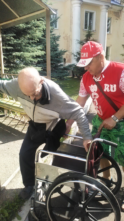 Когда вышли на улицу то папа увидел-что еще у одного мужчины (он без ноги) уехала инвалидная коляска.