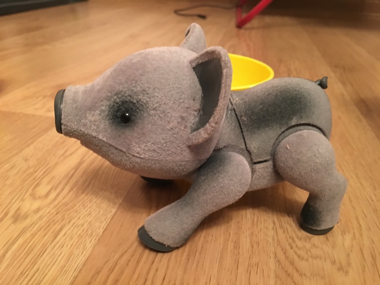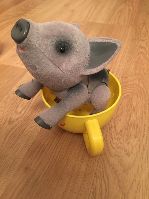 3. Свинка говорящая в кружке. В ней видимо батарейки сели, но игруха прикольная. Говорит несколько фраз:"давай поиграем!","мне нужны новые кроссовки", "пора спать" и Ещё что-то