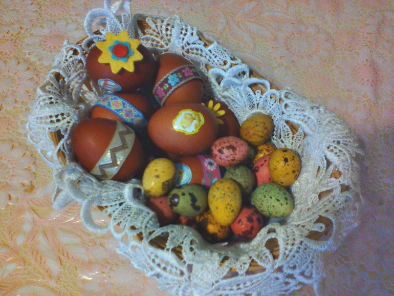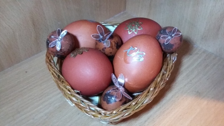 Все очень красивые)))Хоть я участник,но я для себя отметила идеи яичек на след год!Точно буду декупаж делать из салфеток,очень красиво!Божьи коровки тоже классные,буду делать.Еще роспись и стразы красиво.И еще, меня очень удивило,что перепелинные яйца многие тоже красят.Я аллергик и ем перепелинные яйца и всегда их использую для себя.