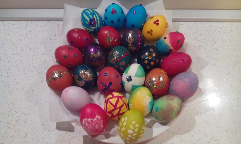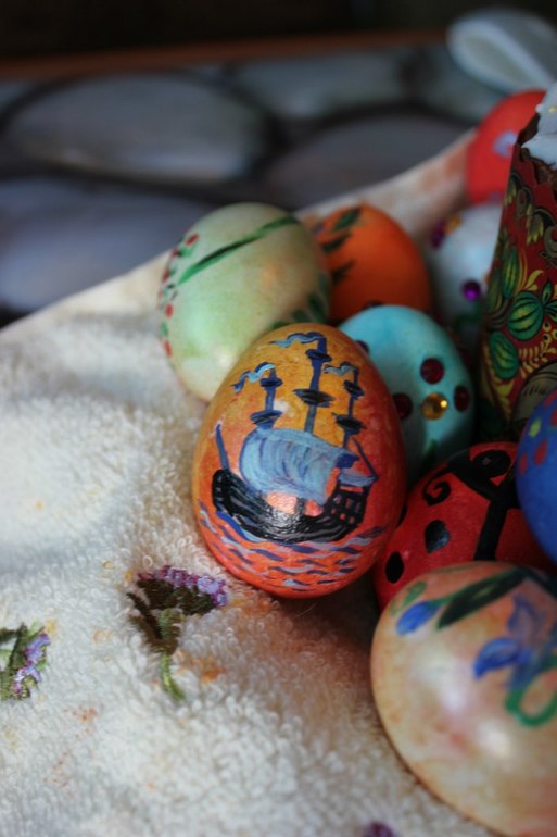 долго думала,выбрала,того кто делал все сам или с ребёнком (детьми)не используя посторонних украшений кроме красок(шелухи),не имея художественного образования.