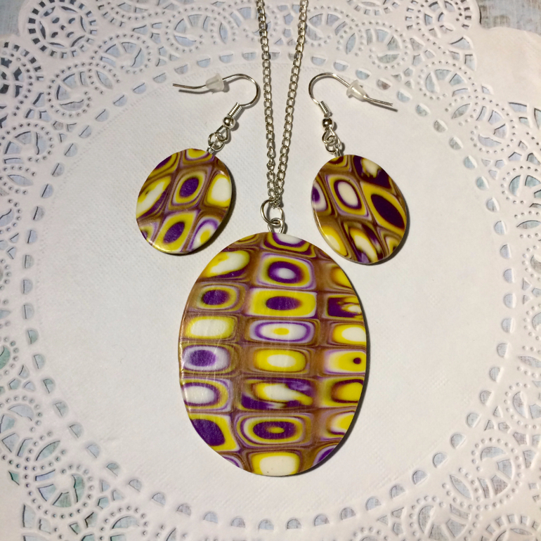 Кулон-медальон (5 см высота) и серьги (2,5). Легкий и прочный. Материалы те же, что и у Апельсинов. Ручная работа