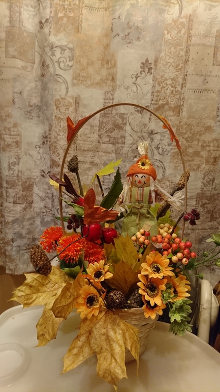 А вот наша поделка, а вернее корзина-осень, которой решили украсить праздник