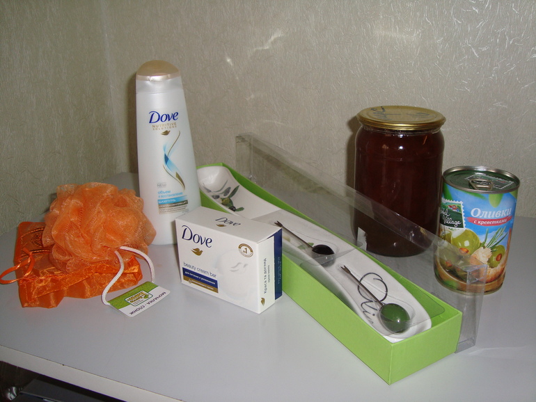 Мочалка-спонж. Мыло Дав. Шампунь Дав "Объем и восстановление". Блюдо для оливок с вилочками. Оливки с креветками. Варенье домашнее перс.