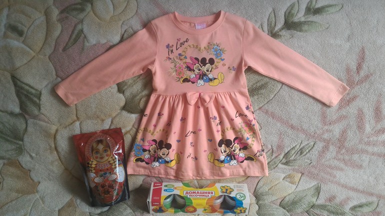 Платье для для девочки размер 98, набор для творчества Радужный песок и конфетки)