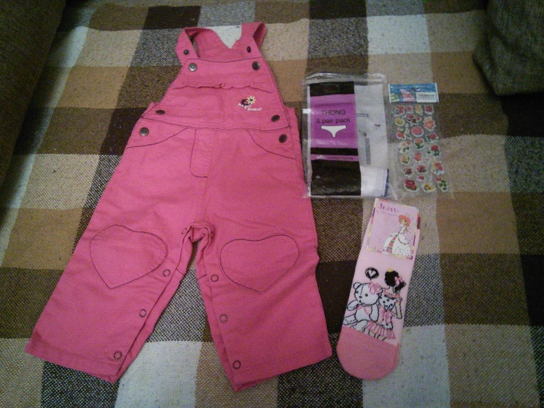 Брючки для малышки,носочки для Никуси,наклейки,трусики для старшей..