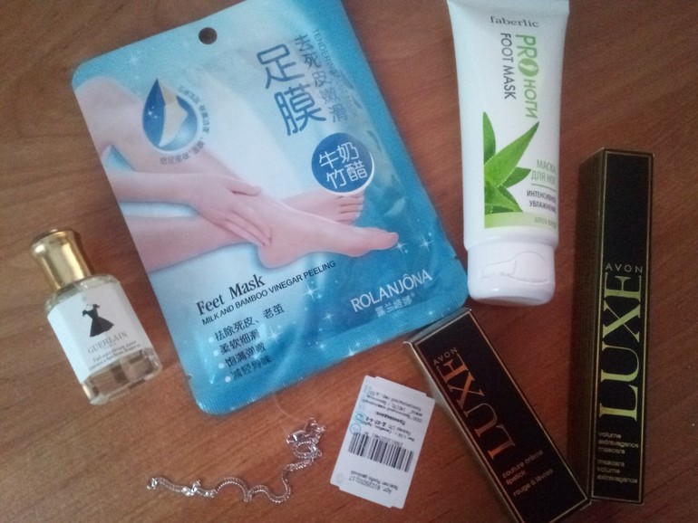 Хочу подарить вот такой подарочек к 8 марта)). Браслетик(серебро)-17р-р+тушь Avon Luxe + помада Avon Luxe Nude +масляные духи+маска носочки для ног +крем маска для ног.