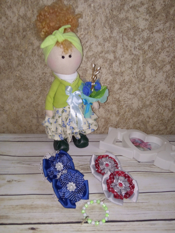 Продолжаем Интерьерной куколкой,браслетик и 2 пары бантиков на резиночках
