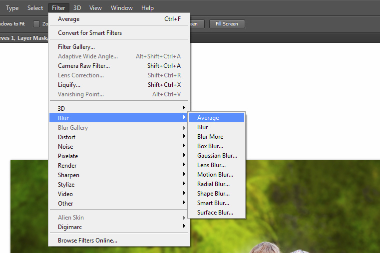 Идем в меню Filter/Blur/Average (Фильтры/Размытие/Среднее) и применяем этот фильтр.