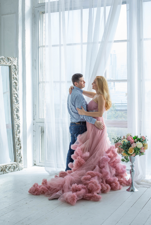Я не фотограф, но я не понимаю нарядов, муж как бы в повседневной одежде, в джинсах, а жена в таком платье и как по мне много пространства вокруг, концепция не понятна...