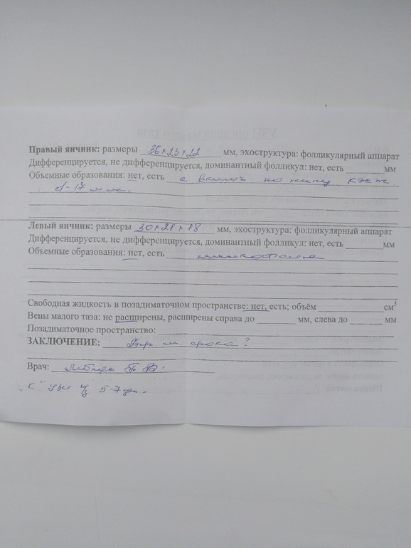МОЯ ИСТОРИЯ ПЛАНИРОВАНИЯSOS ДЕВОЧКИ!!! 10 ДНЕЙ ЗАДЕРЖКИ ТЕСТ НИЧЕГО НЕ ПОКАЗЫВАЕТ😭 Всем доброго времени суток!!! У меня очень странная ситуация которая заставляет меня каждый день переживать, все связано с неопределенностью. Для начала познакомимся меня зовут Виктория мне 25, была уже одна Б. Так вот у кого может была похожая ситуация прошу отзовитесь или кто может знающий мне подсказать, а то скоро изведусь, беременность я жду и очень хочу. Цикл у меня в средне 33 дня, мес идут по 3-4 дня максимум, начало последних месячных было 28 Января, след. должны были начаться 2 марта но уже с этого момента у меня задержка 10 дней, делаю тесты отрицательные, живот бывает и тянет то поясница в одной точке груди набухают то опять не болят... 🤔 Сегодня не выдержала пошла на УЗИ, что бы исключить различного рода воспаления и какие либо злокачественнве болезни, в заключении поставила врач "Беременность малого срока под?" ❕❕❕ не понимаю что она написала там про яичники типо желтое тело d-17мм, размеры 36×23×22мм это правый без объемныхобразований, а левый 30×21×18мм без объемных образований и что то еще написала но не могу разобрать, посмотрите в прикрепленном фото моего заключения. Что касается размеров матки то длинна 55, ширина 44, передний-задний размер 42, контуры ровные, эхоструктура однородная, секреторная, Эндометрия толщиной 9,4 мм... Сказали через неделю сделать тест т.к возможно маленький срок и гармон еще не выработался и прийти на повторное УЗИ. Могу ли я быть в ПОЛОЖЕНИИ ДЕВОЧКИ С ТАКИМИ ПОКАЗАТЕЛЯМИ?! КАША В ГОЛОВЕ НЕ ЗНАЮ ЧТО И ДУМАТЬ🙏🤨😣