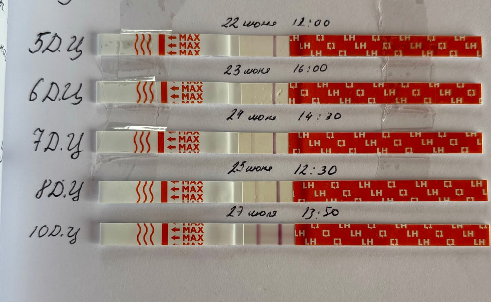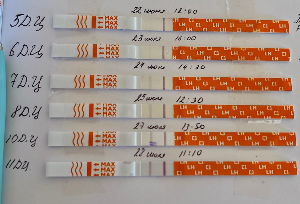 Моя ОвуляшкаТест на О выдал яркую вторую полоску 27 июля. На следующий день 28 числа тест уже выдал слабую полоску и такую же 29 числа тоже🫠 это получается мы упустили О?