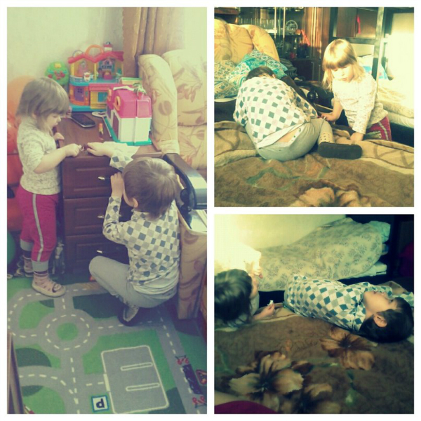 А дальше нас ждал сюрприз:приболела Дашутка-насморок,кашель...Здрасти-приехали...Ну что ж делать-раз уж я так и так дома на больничном-стали сидеть втроём!Тут уже самое веселье)))Когда детки пораздельности-они какие-то спокойные что ли.А вместе-два сатанёнка-деруться,щипаются,визжат,пищат..ну вообщем что тут рассказывать)))Типичная картина))Хотя и положитльных моментов много было...