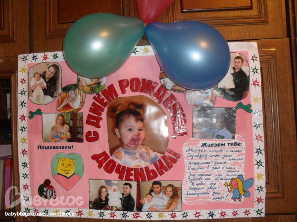 Поздравляю:-) пред последняя фотка с куклой, просто отпад. Ну, и плакаты, украшения, растяжки - во всем мамина забота чувствуется.