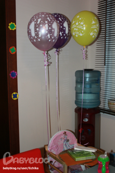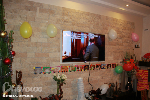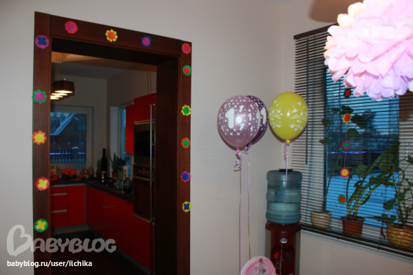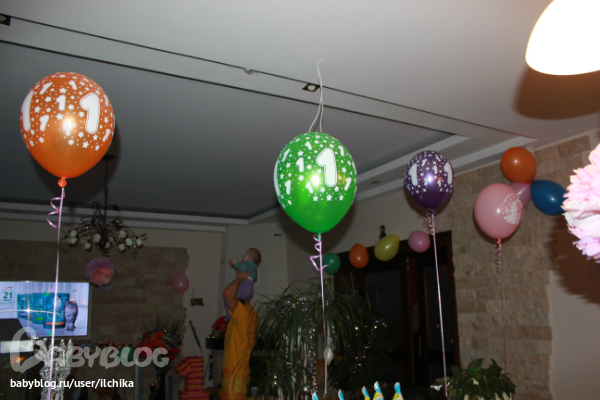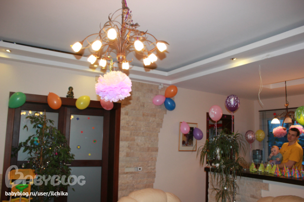 Сценарии, конкурсы, игрыУкрашения были следущии. паровозик с фотографиями от 0 до 12 мес. Шарики с гелием и простые, помпоны, цветы вырезаные.)