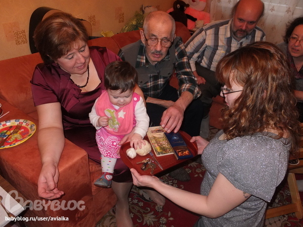 "Гадание" на судьбу))) Варюшка выбрала чеснок, что обозначает здоровье) Молодец)