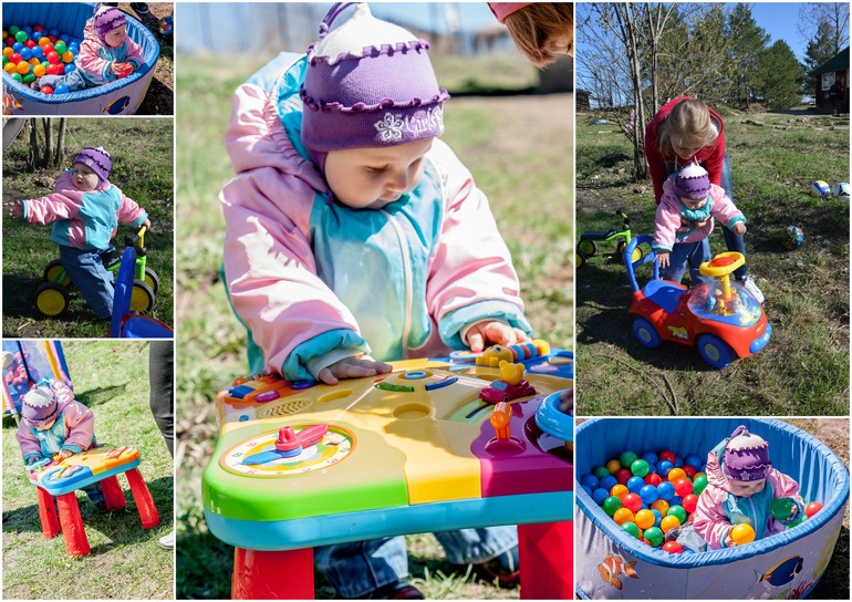 Для кучи детишек привезли развлечения ввиде батута, игровой кухни, развивающего столика, сухого бассейна, машинки-каталки и беговела, плюс рядом с беседкой была небольная площадка с горкой, качелями и песочницей. Хватило всем, даже тем, кто давно уже не маленький)))