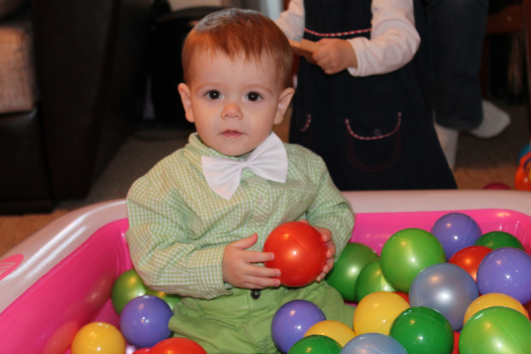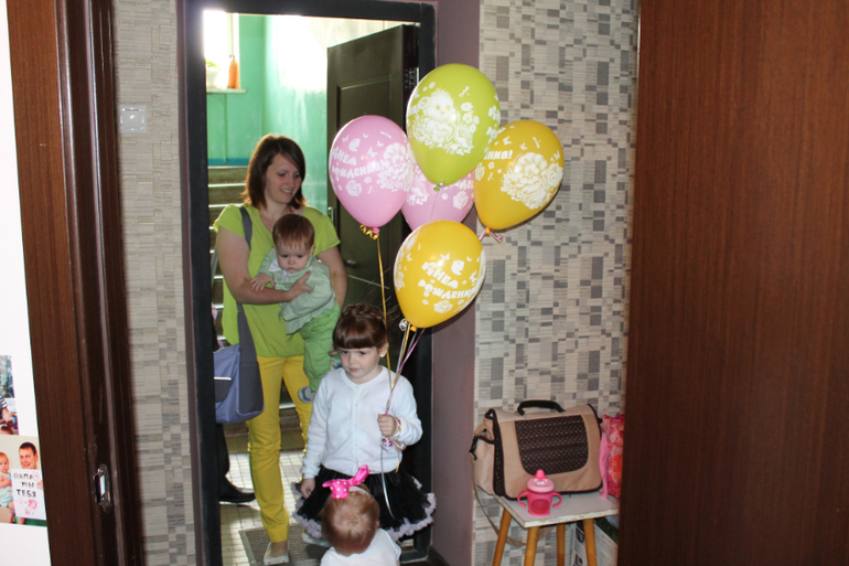 Отмечали мы день в день, не смотря на то, что 9 число это был вторник. Ну и так как у нас однокомнатная квартира, то особо не разгуляешься, хотя дети оторвались по полной программе.