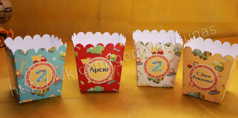 И не забудьте о сувенирах на память о вечере. Пусть это будут строительные каски, дети смогут забрать их с собой и продолжать играть с ними уже дома или ящик для инструментов или ведро с совком, внутрь которого положите сладости или другие маленькие подарочки.