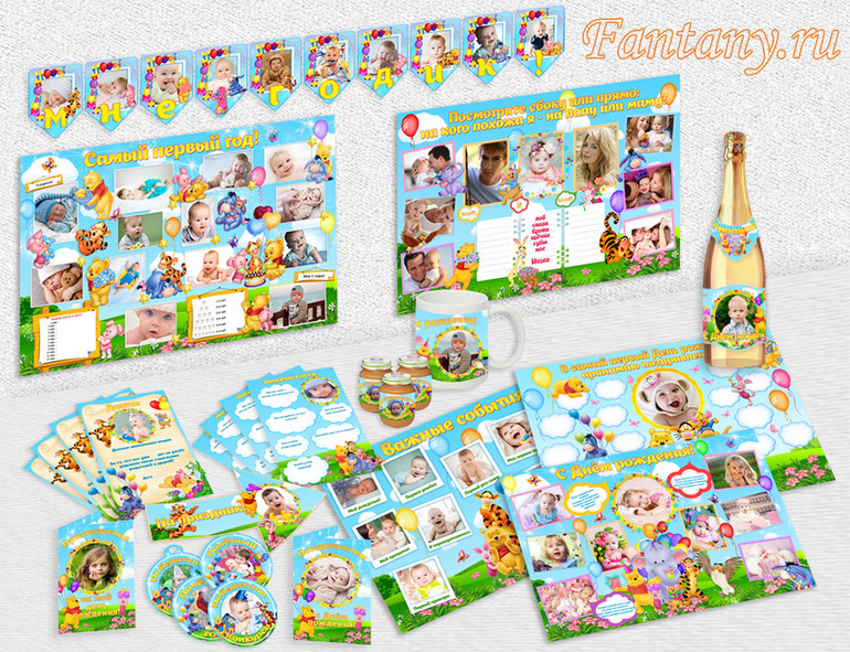 - плакаты: «С Днем рождения», «Мой первый годик», «Мои первые достижения», «На кого же я похож» и плакат для пожеланий гостей