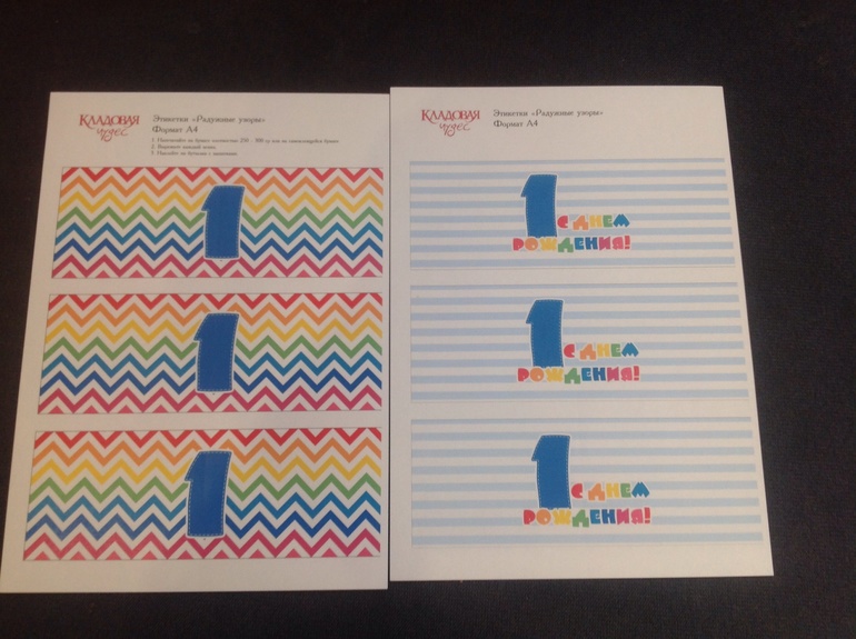 Наклейки на бутылочки 2 листа А4 на самоклеящейся бумаге