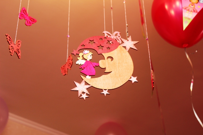 также под потолком были гелиевые шарики в розово-белых тонах.
