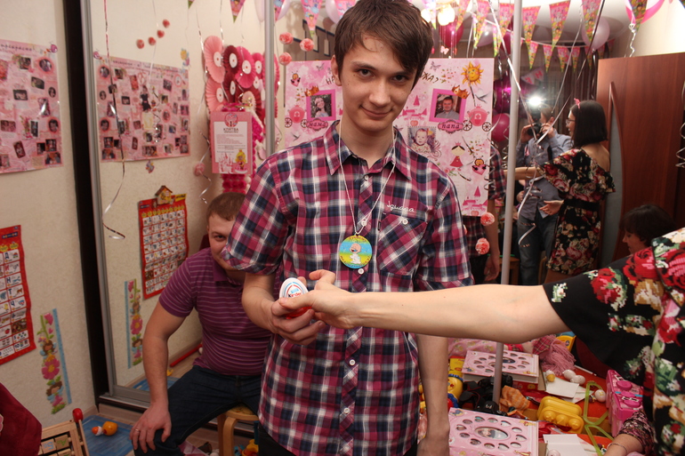 Естественно был сценарий, проводила разные конкурсы: Викторину, кто знает лучше Настю; Лучший пеленальщик; Лучший дегустатор. Победители получали медали и сладкие призы: