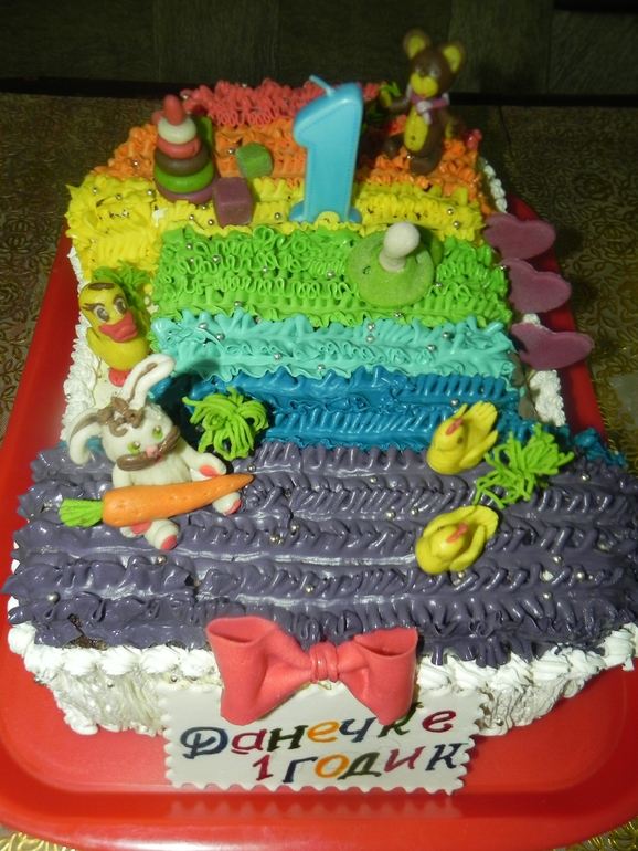 Именинник отдохнул немного и тут мы принялись за торт))торт был в личном исполнении мамы и немного моя помощь присутствовала,результат меня от души порадовал...