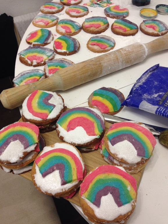 Итого 35 печений. Это оказалось не так легко, как мне думалось... Но результат есть и он остывает в холодильнике. Себестоимость печенья : 200 рублей, мастики еще 100 рублей.