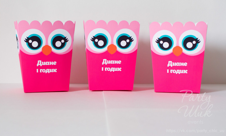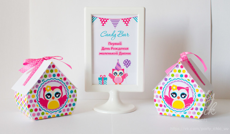 Предлагаю свои услуги!Состав набора: колпаки, топперы, формочки (юбочки) для капкейков, этикетки на шоколадки, этикетки на соки, флажки для трубочек, именная поздравительная растяжка, коробки для попкорна, конверт с карточками для пожеланий, открытка на сладкий стол, бонбоньерки в виде домика совы, фотобутафория (маски для фотосессии)