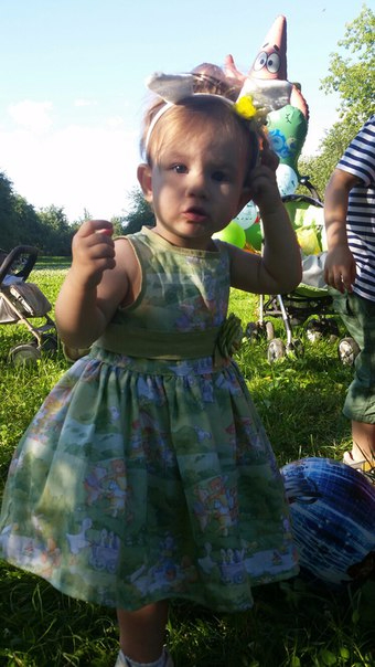 В моей семье есть традиция - на все праздники одежду деткам шили сами, поэтому ткань я купила за три месяца до дня рождения. Сшилось платьице с поясом и подъюбником из мягкой сетки (сделала отдельно, чтобы снять, если будет жарко), повязочка на голову; ушки купили в reserved.