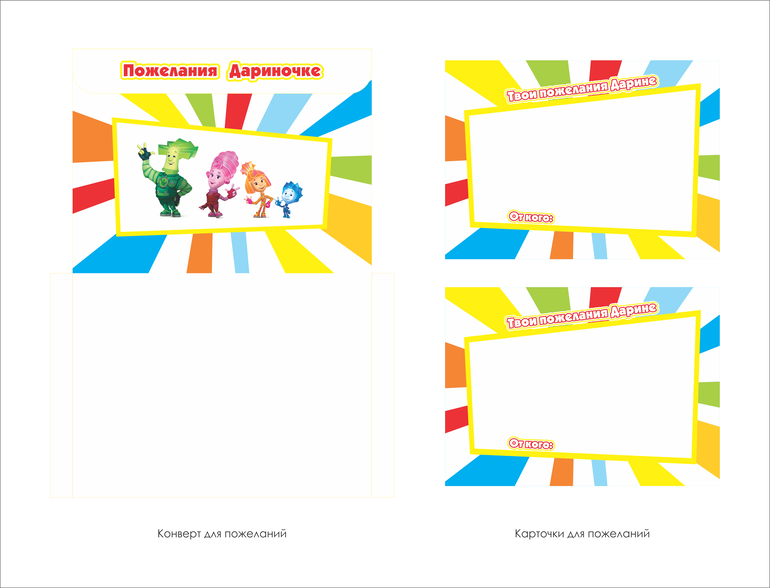 Конверт и карточки для пожеланий в электронном виде выглядят так:
