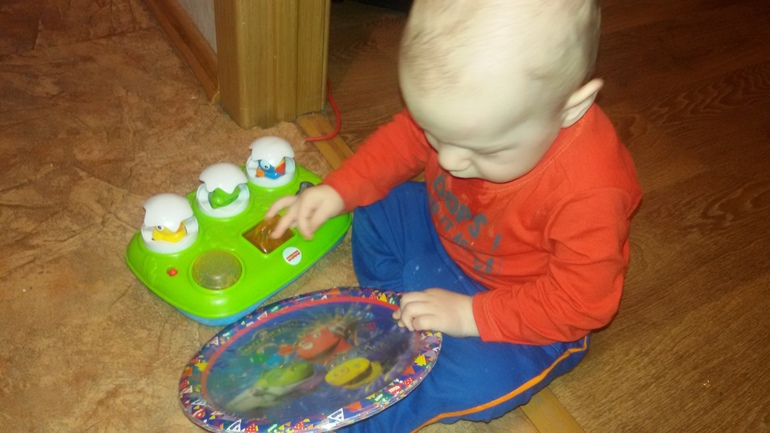Еще купили игрушку-развивашку с кнопочками и звуками