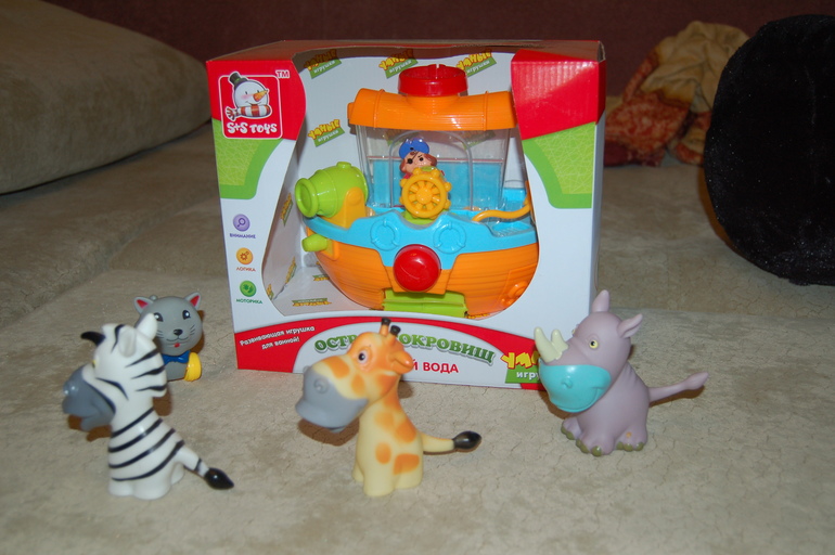 Корабль для купания (пока Егор не оценил), чудо зоопарк (слона на не шла когда фото делала) и веселую музыкальную кошечку.