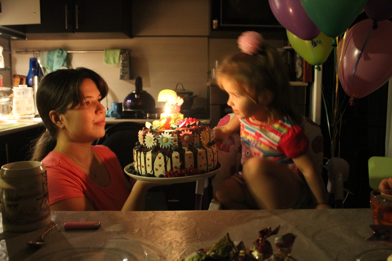 торт с дочей делали сами и украшала она в основном,я потом исправляла