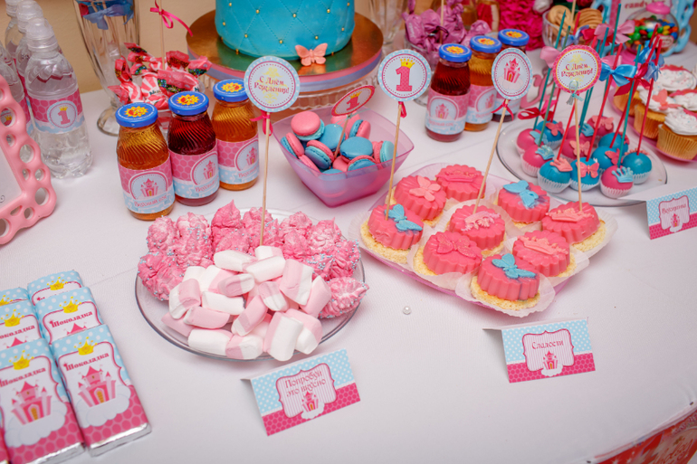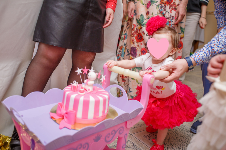 Начала я подготовку к годовасию, когда на улице был февраль месяц, (др у нас в мае) именно тогда я случайно попала на сообщество годовасие и началось…. Идей как его отметить сразу появилось много, выбрать было сложно, но тут я вспомнила, что, когда Маше было 2 месяца я купила ей корону. Поэтому с выбором темы первого дня рождения вопрос не стоял, тема выбрана - little princess, все остальное подбиралось и готовилось именно к этой короне. Сначала планировали отмечать на даче, мы в тот момент как раз покупали новый дом, однако не успели, и решили отметить в ресторане, так как гостей приглашено много и места в квартире всем бы точно не хватило. На день рождения мы пригласили примерно 20 взрослых и 8 детей, причем дети разного возраста от года до 5 лет.