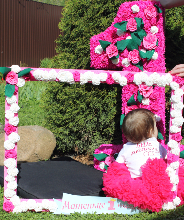 А это также наша рамочка, в которой фотографировались все гости) с их фотографиями планирую сделать альбом пожеланий с 1 дня рождения)